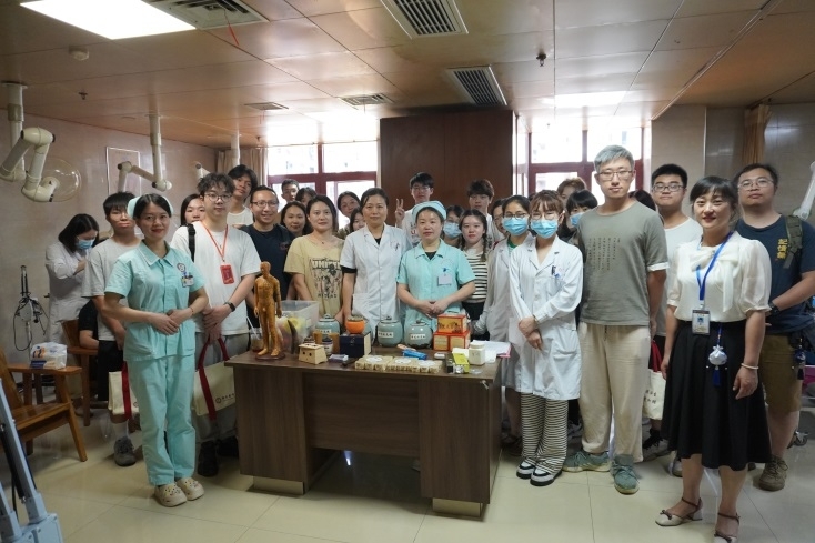 “2024大湾区中医药文化研学营” 于2024年6月11日至17日在湖南盛大展开。此次研学营来自澳门科技大学、香港大学、香港中文大学、香港浸会大学等高校70余名师生踊跃参加。活动旨在大力弘扬中医药文化、深入了解湖湘文化,积极促进内地与港澳中医药方面的学术交流,着力培养中医药人才。 研学交流期间,湖南中医药大学举办了“中医传承创新90年”国医精英课,涵盖“数字中医”,“神奇针灸”,“中医基础理论”等内容。此外,还前往湖南中医药大学第一附属医院,在骨伤科中医经典病房、治未病中心进行观摩学习和实践,参观了诸如体质辨识仪、声音辨识仪和经络传感检测仪等先进设备,使同学们对于中医诊疗技术的传承及创新有了深刻的认识,极大激发同学们对中医药研究深入探索的热情。 湖南中医药大学第一附属医院科室见习 湖南中医药大学附属一医院研学交流会议 我们沿着习近平主席的足迹,走进了精准扶贫首倡地湘西十八洞村。与花垣县青少年进行交流活动,各高校的代表纷纷交流发言,分享了他们对国家发展的感受和对未来的憧憬以及如何深化两地青少年之间的友谊与交流等。“张家界民族医药研学”,营员们来到张家界市中医医院,研学师生分组参加了火龙罐、虎符铜砭刮痧、穴位贴敷、耳穴疗法、温针灸、制作中草药香囊等中医药文化观摩、实践体验活动。让同学们更深入体验中医药文化的精髓和“神药两解”的独特之处。 游览了风景秀丽的武陵源、金鞭溪,见识了野外中草药的生长环境,感叹大自然的神奇魅力。 全体营员在湘西十八洞村合影 研学尾声,全体营员到湖南省博物院进行了参观访问,重点了解了长沙马王堆汉墓及其出土的中医药相关文物。穿越时空,与历史对话,感受历史文化,彰显中华民族的智慧和创造力。在湖南工业大学参观学习了中医药与设计专业的交叉融合,体现中医药在艺术领域也拥有着无限可能。 湖南工业大学研学交流合影 此次活动为青年一代播下友谊与合作的种子,激励更多人才为中医药的全球传播与发展贡献力量。 活动花絮