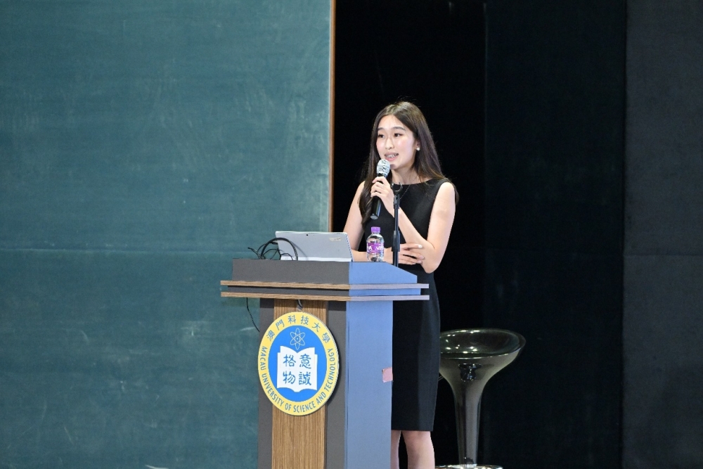 接著,中醫藥學院院長曾莉教授發表了熱情洋溢的歡迎致辭,對300多位新生同學加入中醫藥學院大家庭表示熱烈祝賀及誠摯歡迎。她勉勵同學們珍惜大學提供的學習平台,在今後的學業上能夠踐行大學意誠格物的校訓,做澳科大精神的傳承者;在求學生涯中能夠不負眾望、不負青春,做與澳科大相互成就的人。希望同學既要勤求古訓、博採眾長,又要學貫中西、融通古今。希望同學能將自己打造成為腦中有理想、胸中有氣度、心中有情感、腹中有知識、腳下有立場、手上有技能的德才兼備的中醫藥人才。曾莉院長借用鳳凰花開的美好寓意,祝福同學們在澳科大都能學有所成,再續華章!