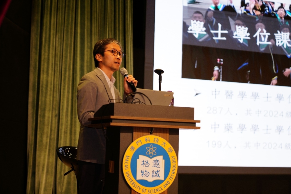 澳門科技大學醫學部中醫藥學院2024/2025學年中醫藥學院迎新及新生說明會於9月12日在D座禮堂順利舉行。本學年中醫藥學院迎來本科生154人,研究生213人,逾三百名新生同學與大學、學院領導、教師及行政人員出席了當天的活動。