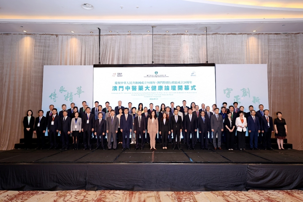 2024年9月23日,澳门卫生局举办“庆祝中华人民共和国成立75周年、澳门特别行政区成立25周年、澳门中医药大健康论坛”,论坛开幕式由社会文化司司长欧阳瑜、国家中医药管理局副局长王志勇、社会文化司司长办公室主任何钰珊、中央人民政府驻澳门特别行政区联络办公室宣传文化部部长万速成、卫生局局长罗奕龙、国家中医药管理局港澳台办公室主任吴振斗、国家中医药管理局人事教育司司长陆建伟、药物监督管理局局长蔡炳祥、卫生局社区医疗卫生范畴副局长郑成业担任主礼嘉宾,共同主持亮灯仪式。澳门科技大学中医药学院曾莉院长及吴其标助理院长应邀出席论坛,主持主题报告会,发表主题演讲,就中医药区域合作发展、高层次中医药人才培养、成果转化等议题,与与会专家学者热烈讨论交流,共商中医药传承创新发展大计。