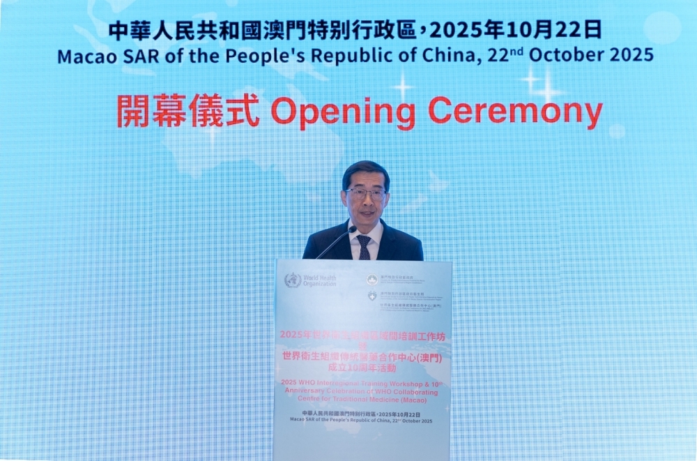 金承哲處長致辭時首先代表世衛感謝澳門特別行政區政府大力支持以及長期保持著友好的合作關系,並回顧了自2011年開啓的合作歷程,尤其世衛傳統醫藥合作中心(澳門)成立10年以來所取得的豐碩成果,例如共同組織了16期區域間培訓工作坊及16期本地培訓工作坊,惠及全球逾3100名專業人士,顯著提升了各國在傳統醫學領域的監管、質量及臨床實踐能力,該中心已發展成為連接世衛與全球在傳統醫學培訓的重要橋樑。而是次開幕儀式後舉行的工作坊正值《世衛全球傳統醫學戰略2025–2034》發佈之際,將聚焦分享各國傳統醫學的經驗,尤其傳統、補充和整合醫學產品的質量與安全,對於落實下一個10年發展規劃具重要意義。