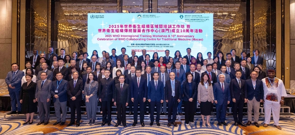 由世界衛生組織(世衛)主辦、澳門特別行政區政府承辦的「2025年世界衛生組織區域間培訓工作坊暨世衛傳統醫藥合作中心(澳門)成立10周年活動」於2025年10月22-24日在本澳舉行。澳科大副校长姜志宏、中醫藥學院副院長吳其標、中藥機制與質量全國重點實驗室教授李婷作為世衛傳統醫藥合作中心(澳門)專家組成員應邀出席。澳門特別行政區政府與世衛亦於10月25日共同主辦「本地培訓工作坊」,澳科大中醫藥學院150名同學积极參與培訓交流,收穫滿滿。